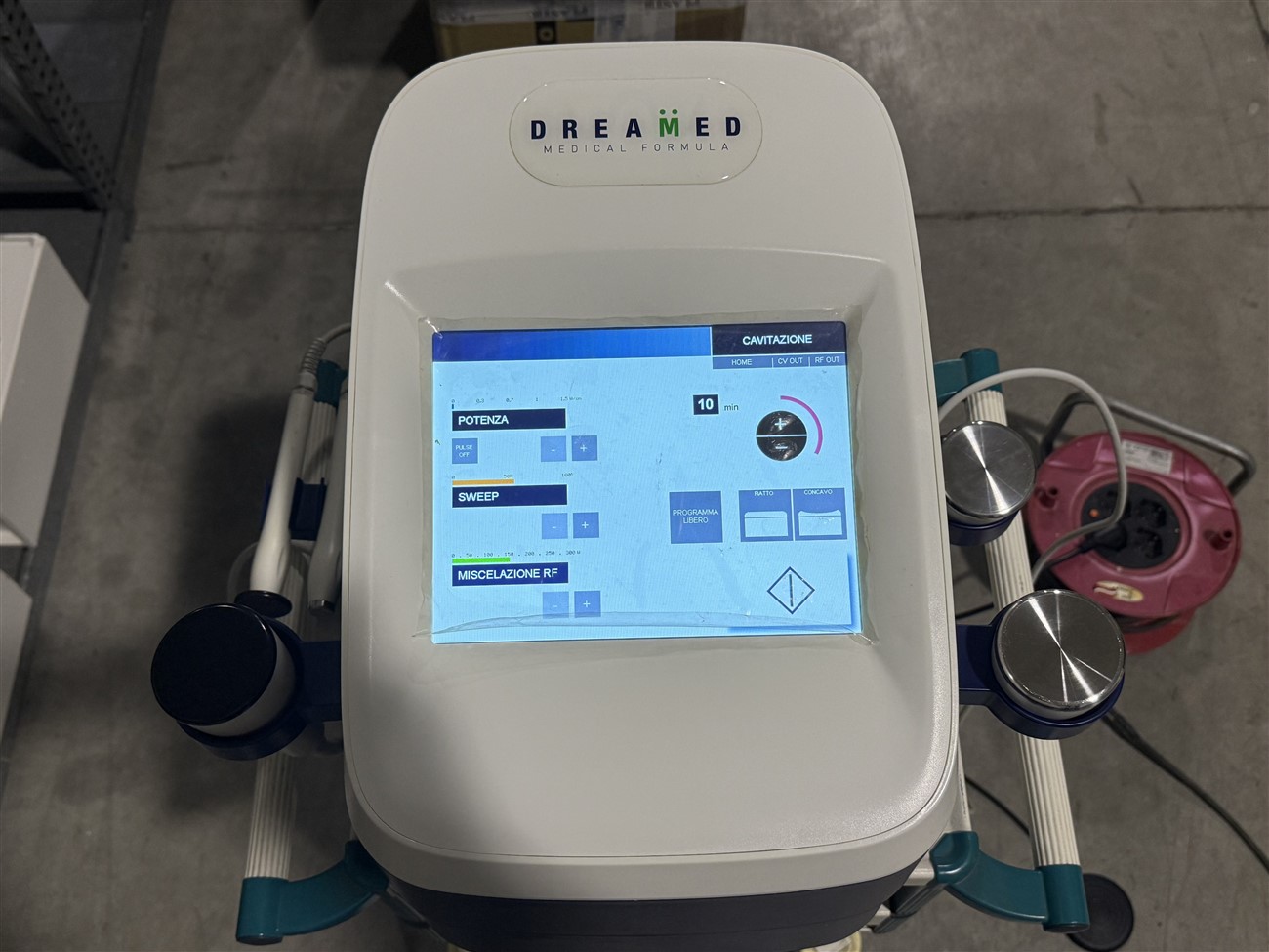 Macchinario estetico professionale DREAMED Medical Formula modello Modula CV, progettato per trattamenti di cavitazione e radiofrequenza multipolare.